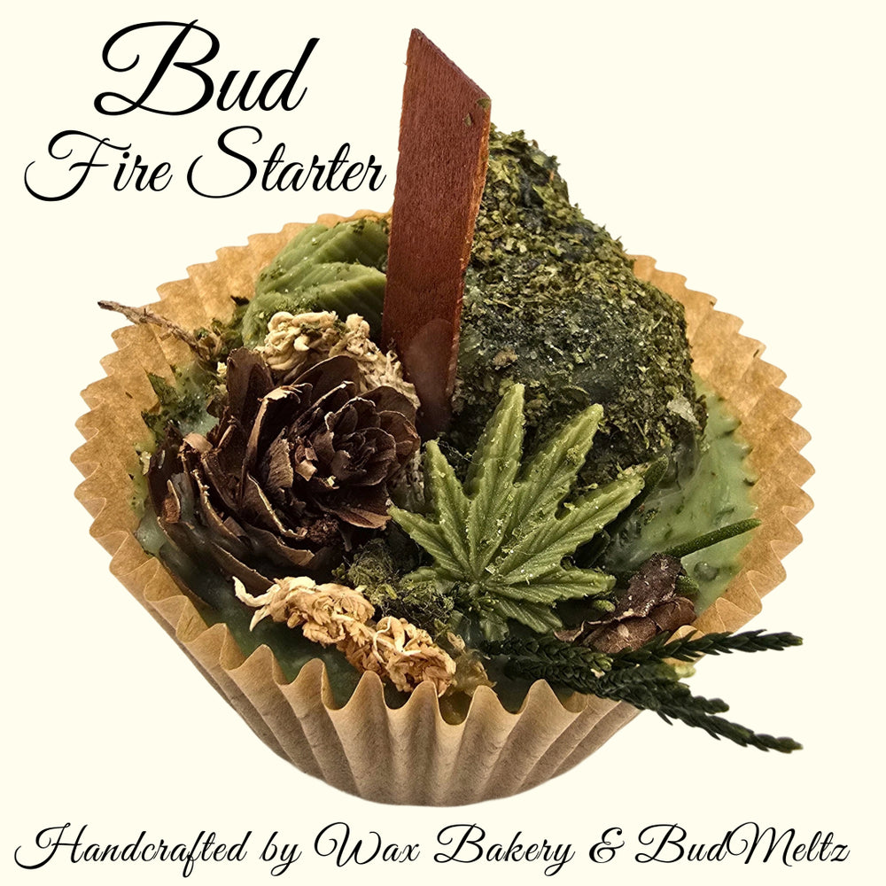 Set of 4 BudMeltz Fire starters displayed in a gift box. For campfires, fire pits, fireplaces & wood stoves. Each one is compared to a regular "cupcake" size. We also carry other designs - see choices available like Winter, Fall, Spa or choose all 4 in one gift box!